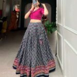 Paired with an unstitched Tussar Silk blouse and a graceful 2.4-meter dupatta featuring matching foil prints, this set is perfect for weddings, festive events, and traditional gatherings. The lightweight micro cotton inner ensures comfort all day long, while the complete package delivers both elegance and ease.